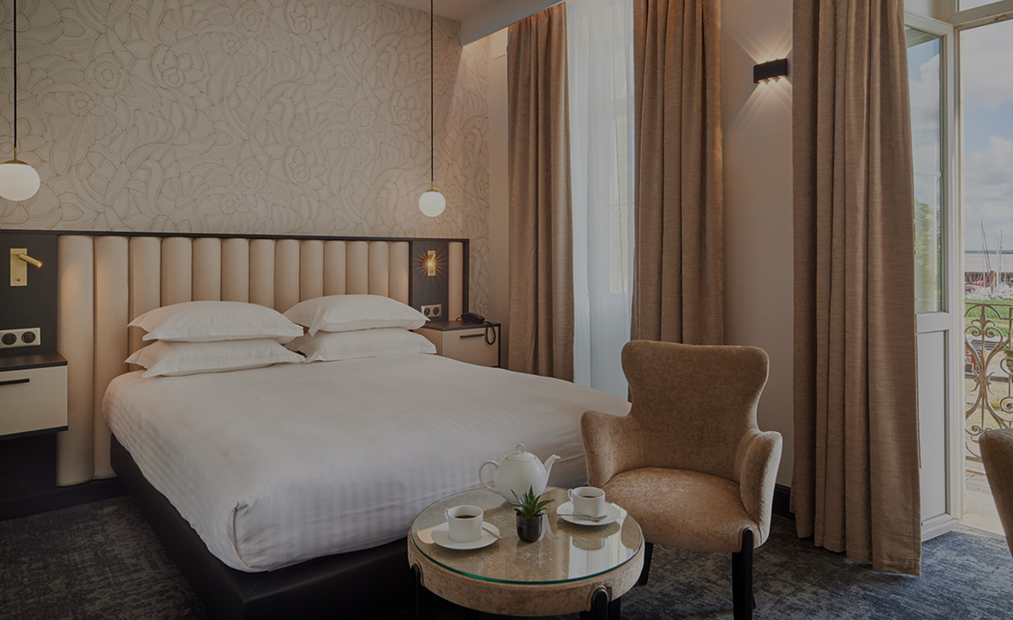 Il y en a pour tous les goûts... Vous êtes plutôt vue estuaire ou vue jardin ? Appréciez un bon café, dégustez un bon cocktail ou régalez vos papilles avec notre carte snacking. À vous de choisir !
